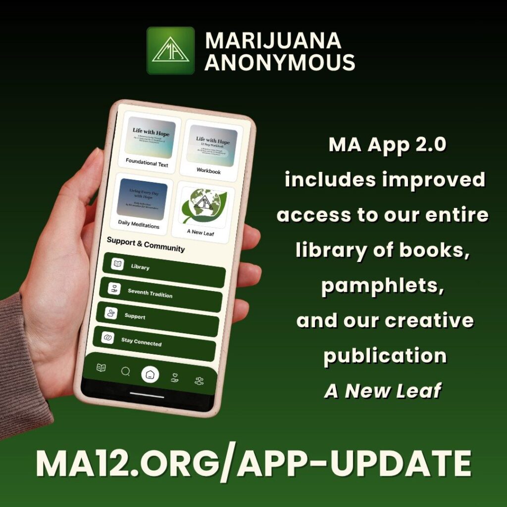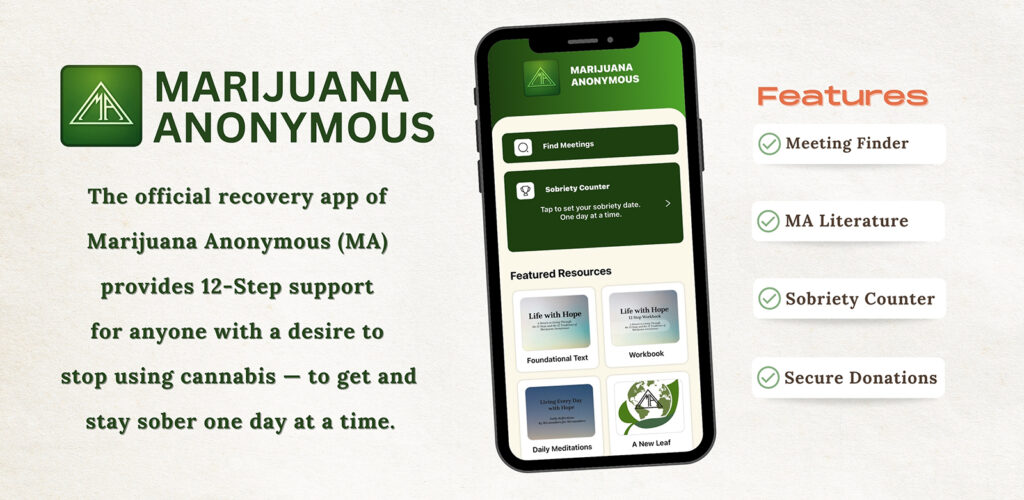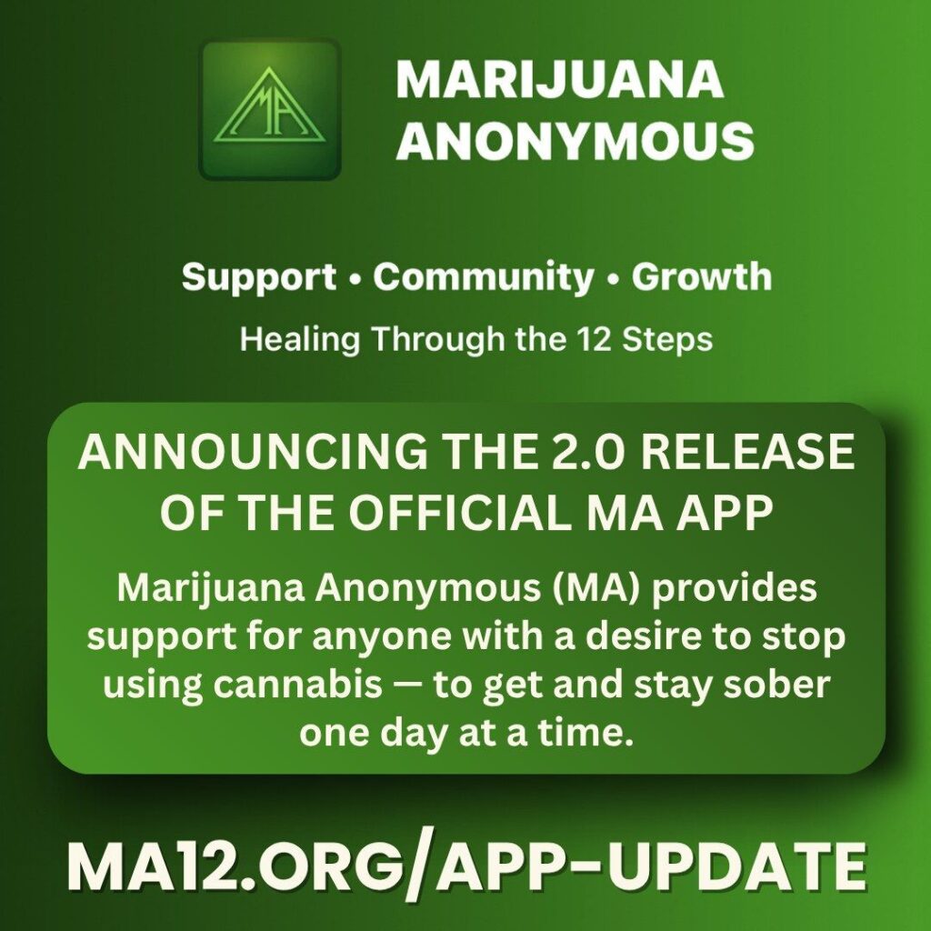 - Marijuana Anonymous App 2.0 is now available for free on Apple and Android.
