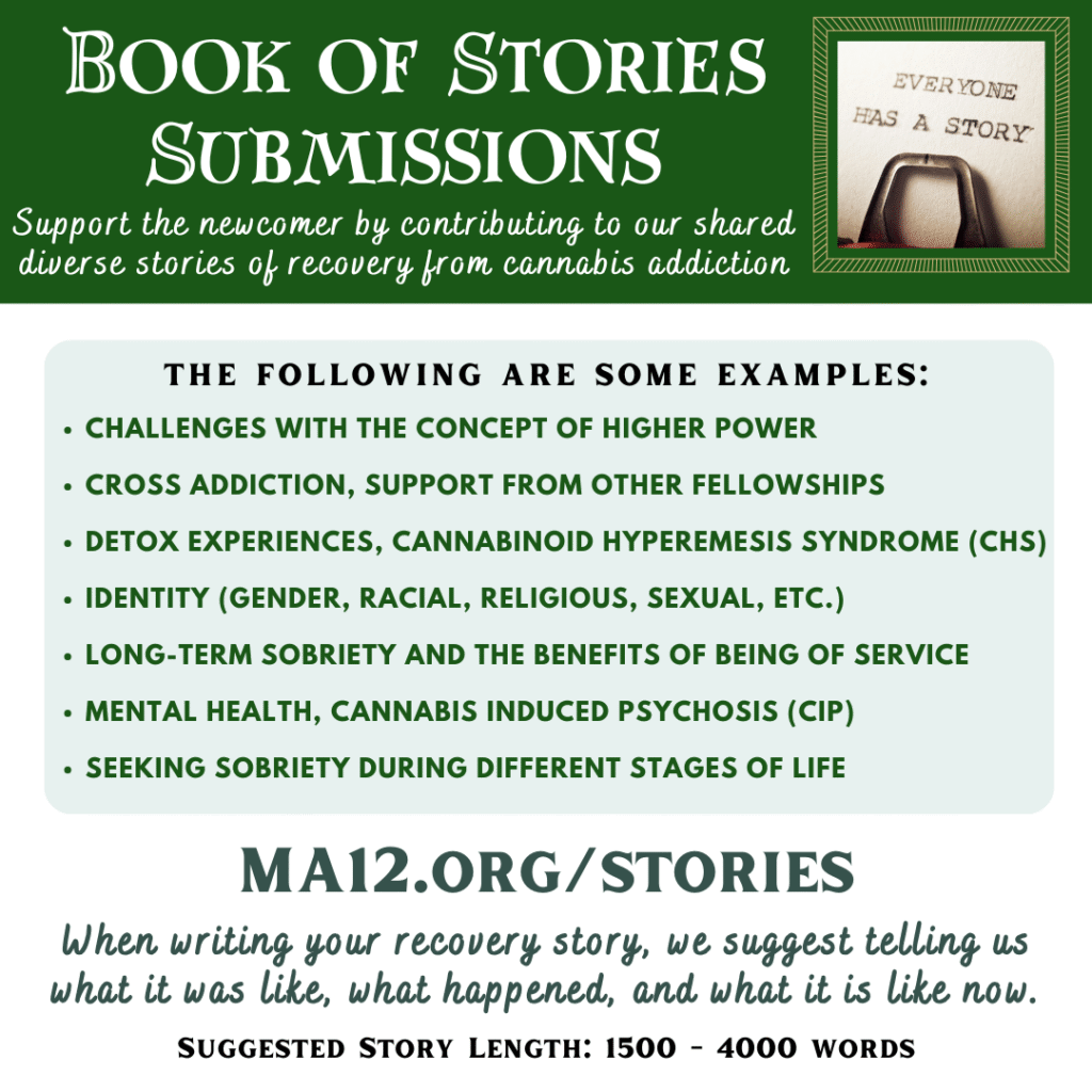 A New Leaf celebrates MA member creativity and seeks to publish the message of hope in recovery. With your many wonderful and creative submissions, A New Leaf continues to unify us in our shared experience as marijuana addicts.